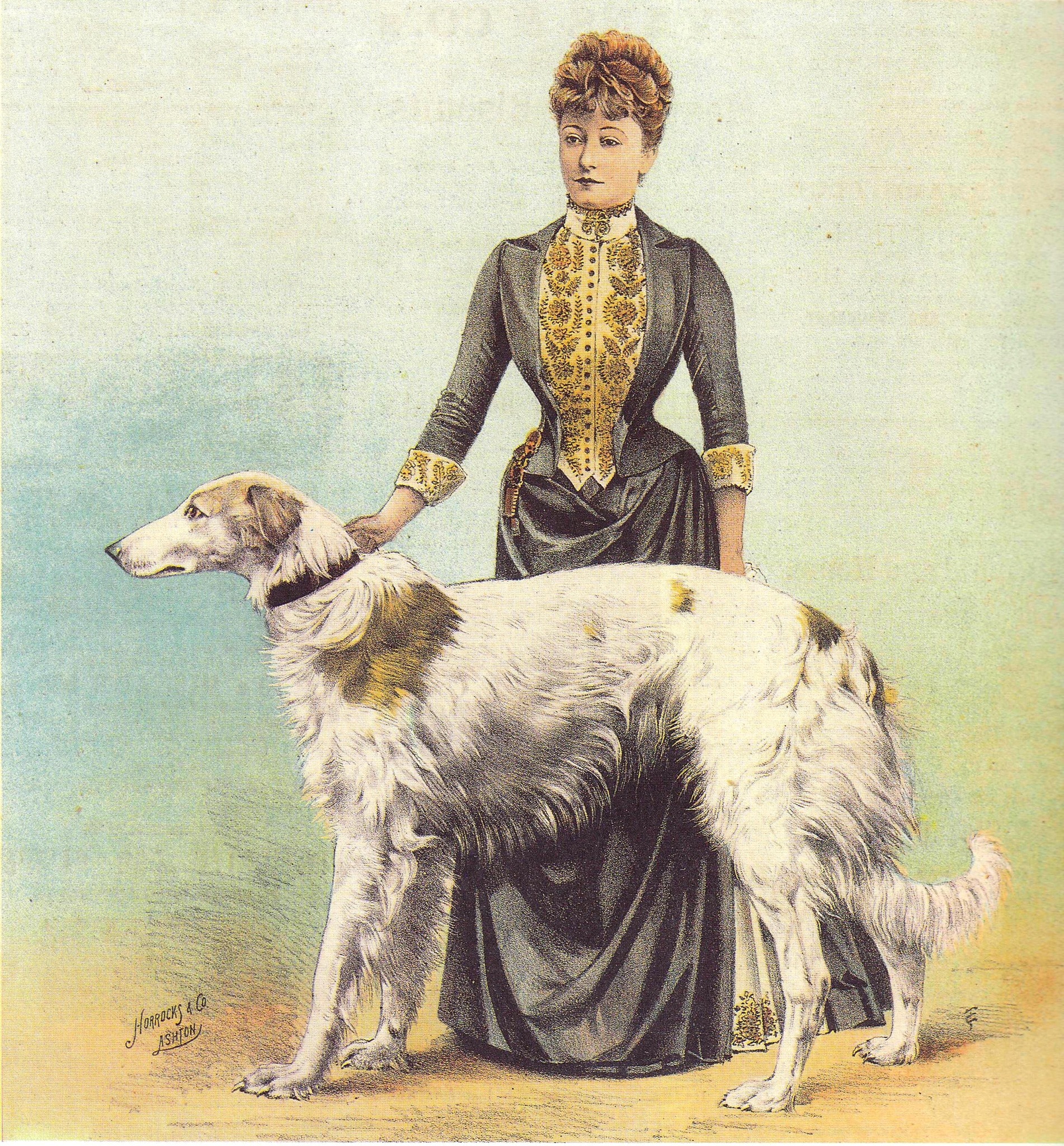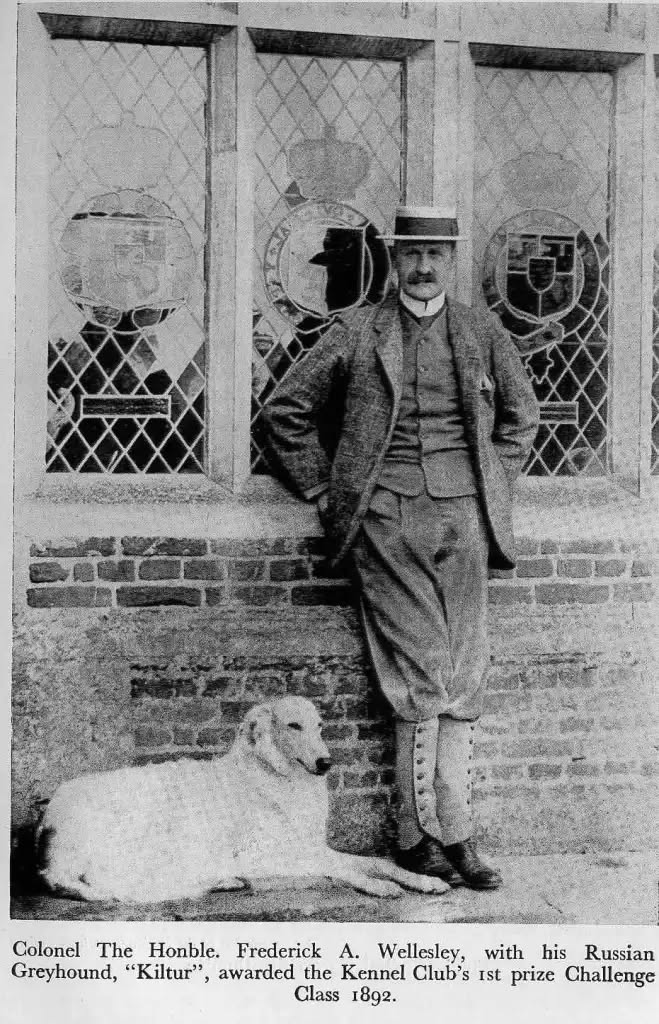 At that exhibition, Krylat was bought by Dr. Scott, who later resold him to England to Colonel Frederick A. Wellesley, the younger son of the 1st Earl Cowley. F.Wellesley was a soldier and diplomat, who served as a military attaché in St. Petersburg, Russia, in the 1870s.In the studbook, the dog is registered under the name of Mrs. Wellesley — she was Fred’s second wife, a showgirl, known by her stage name Kate Vaughan (real name Catherine Alice Candelin).
