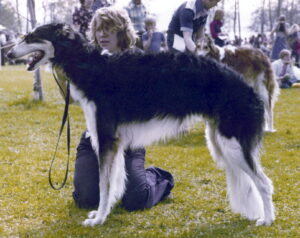 besides her German backgound also some new Czech & Dutch lines. The meritated Int Ch Dimitroff d.y. av Fjascho was brougt to the kennel in the 1990ies, and the Dutch bitch Ardagan’s Song came in 1994. She was used for the (new) F- and also the final H-litter in 1997. This litter contained one Ch, Kaznan Hagor that went to Poland, but also Kaznan Henna continued the line in kennel Tarijemiran. Kaznan breed 31 litters with in all 191 borzois in 25 years between 1972-1997. One might say they had they had their Golden Era the first part of this time dominating the breeding in Finland and supporting both Finland, Sweden and Norway with excellent new bloodlines.