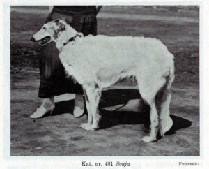 An interesting report from a show in Kristiania (Oslo) in 1915 has been found. The Borzois are, from left, Iwan von Kurfurstenstein (breeder Christoph Otto ) and Hiroh, on the right Ch Ramsden Romance and Ramsden Reindeer. The judge writes very positively about the Borzoi and says that Romance is BOB and Ivan was best male. Unfortunately, there are no signs of either Ivan or Hiroh in today’s pedigrees.