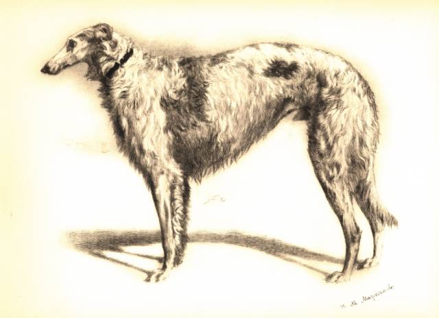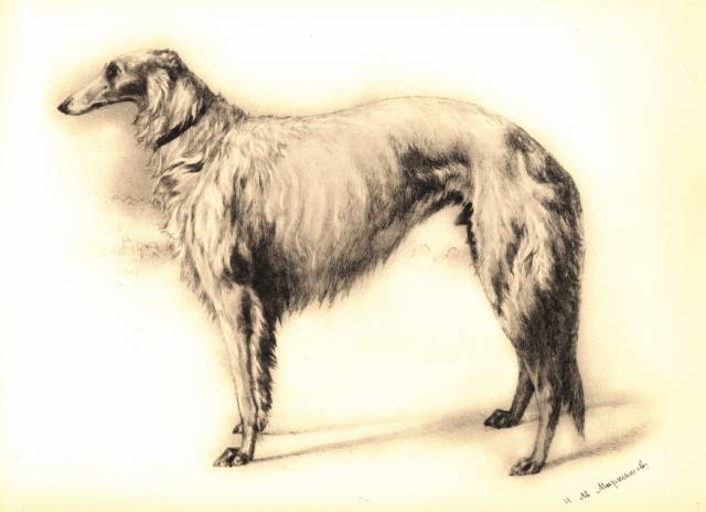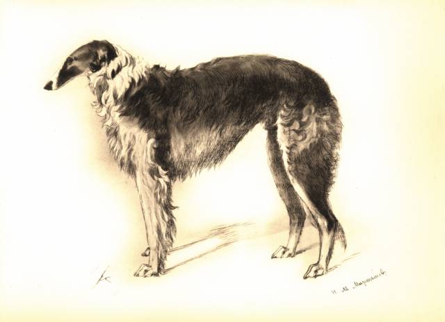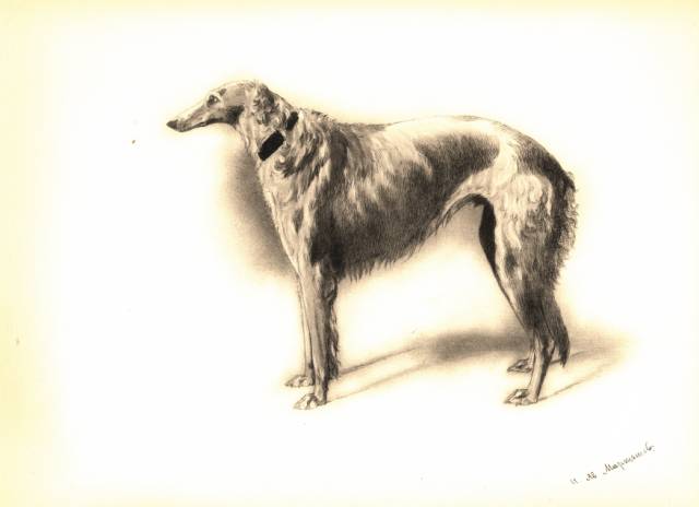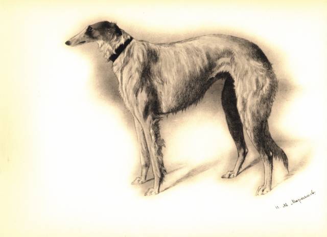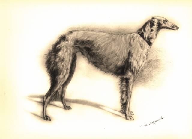 The paintings are all from the time prior to the Perchino kennels. It is paintings, not photos. There is no reason to believe other than that Martynov did his best to have the borzoi look as good as possible. The paintings give us a clear impression of what both the artist and the owners wanted the borzoi to look like.